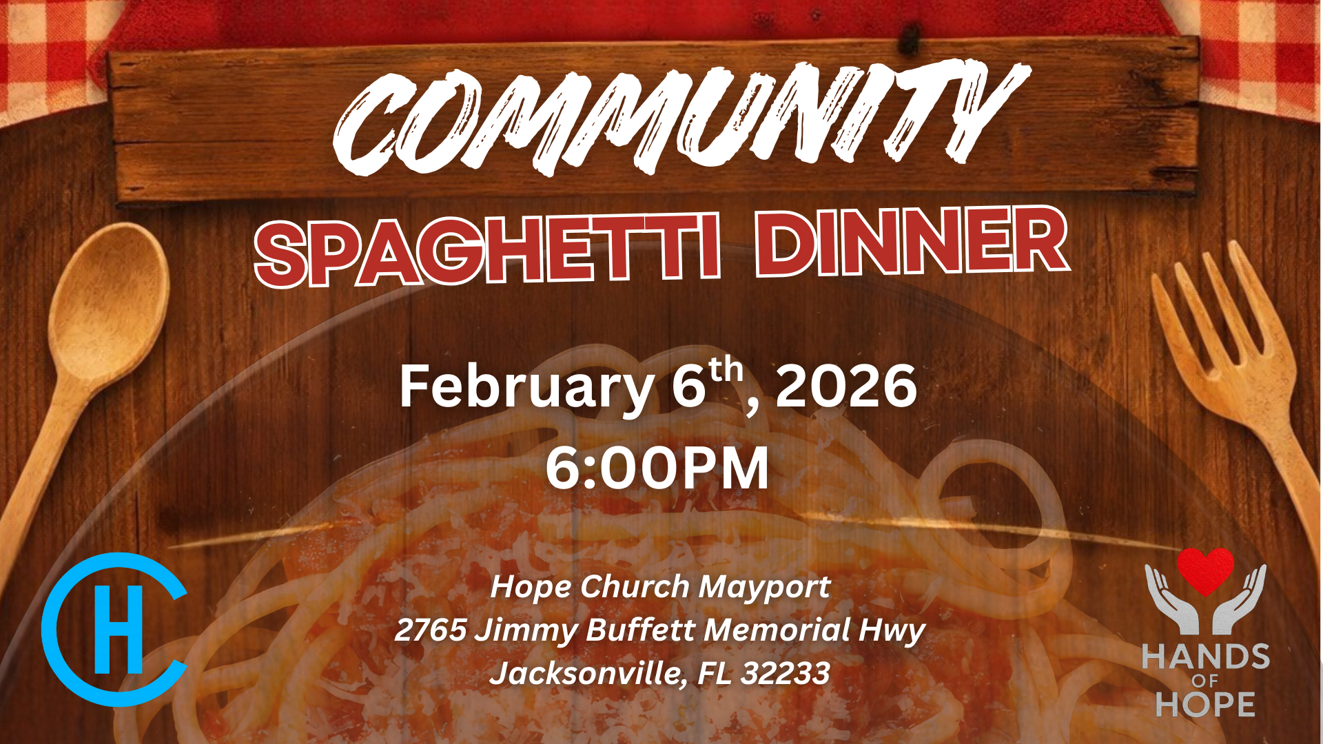 On February 6th @ 6PM, Hope Church will host the Community Spaghetti Dinner!